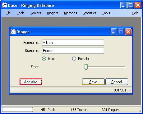 When you edit a ringer, you will notice an "Add AKA" button, clicking this will allow you to add an "Also Known As" to this ringer.