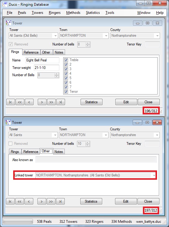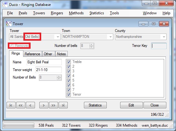Then if this tower has a completely new ring of bells, ie not an augumentation, we recommend you add it as a completely new tower and to distinguish them we also recommend that you then change the name of the original tower slightly to indicate that it is the old bells.